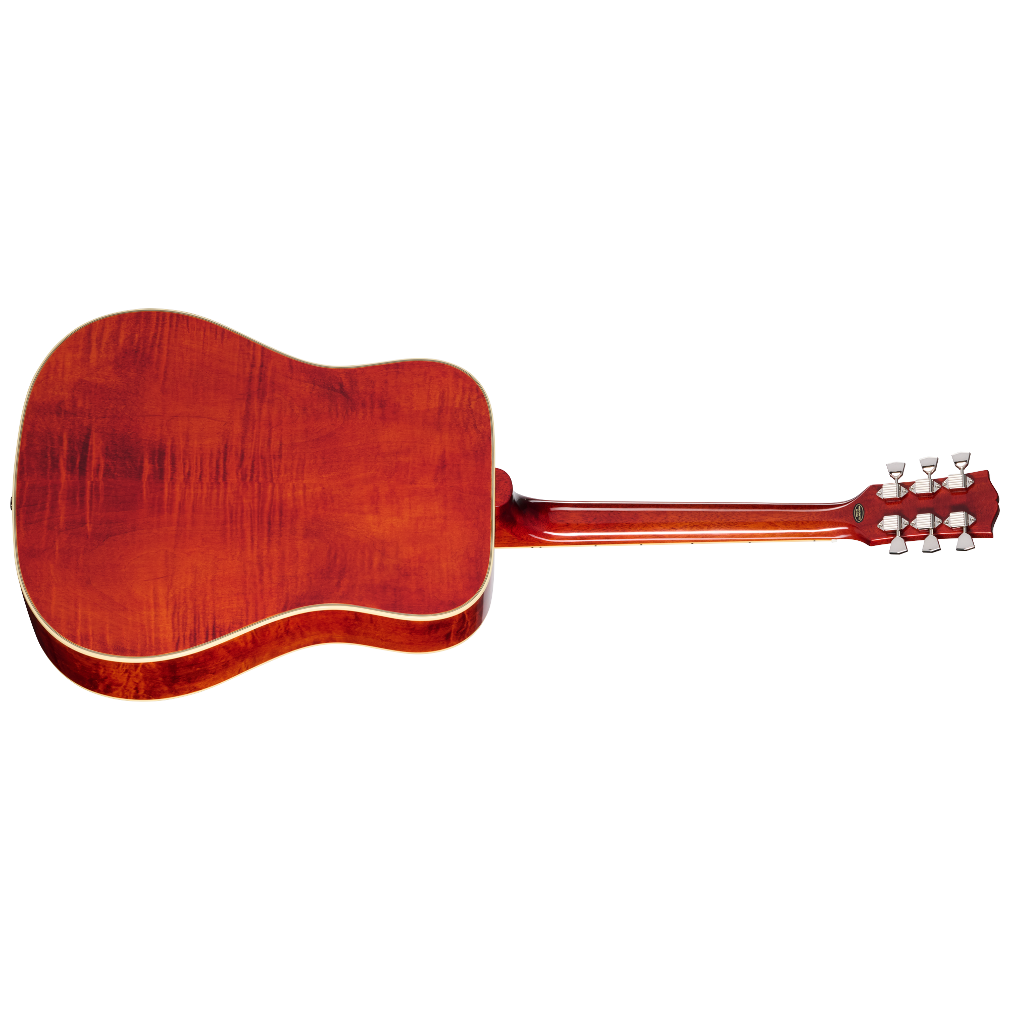 本モデルには、サーマリー・エイジド処理された単板のスプルース・トップが使用され、柾目で木取りされた単板のスプルース材によるスキャロップドXブレーシングと組み合わされています。サイド&バックには単板のフィギュアド・メイプルが使用され、明るくクリアなトーンが特徴です。Hummingbirdよりもやや低音域が豊かで、バランスの取れたサウンドは幅広い音楽ジャンルに適しています。