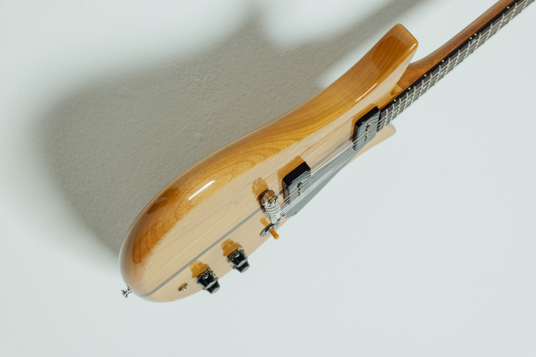 フライング Vやエクスプローラーのデザイン・パテントが出願されたのが1957年6月なので、今回の「セオドア」の原案となったテッドのスケッチが書かれた同年3月18日は、まさに開発の時期だったのだろう。そのスケッチには幾つもの独創的なヘッドストックやロゴ、そしてギターのデザインが描かれている。ギブソンからダブルカッタウェイ・モデルが登場したのは1958年初頭のES-335、同年夏のレスポール・スペシャルだったことを考えると、先行するこの「セオドア」の原案のスケッチは興味深い。そして、シンメトリー・シェイプの深いカッタウェイ、丸みを帯びたフラット・ボディ・シェイプや1 1/2インチの厚み、このギターは1958年半ばにダブル・カッタウェイ・シェイプへと進化するレスポール・ジュニアやスペシャル、そして1961年に姿を現すSGモデルの原型ともいえる。また、1954年に発売されたエレクトリック・マンドリンのフローレンティーン(EM-200)には、既に先端の尖った2ポイント・ダブル・カッタウェイ・シェイプが使われていたので、このデザインをギターへと反映させたのかもしれない。ボディ材としてアルダーが指定されていることもユニークで、明るいナチュラル仕上げを物色していた当時のギブソンでは、メイプル材やスティール・ギターに使われていたオーク、アーチトップのプライウッドに使われていたポプラ、そしてアルダー、ホワイト・リンバウッド(コリーナ)が検討された。