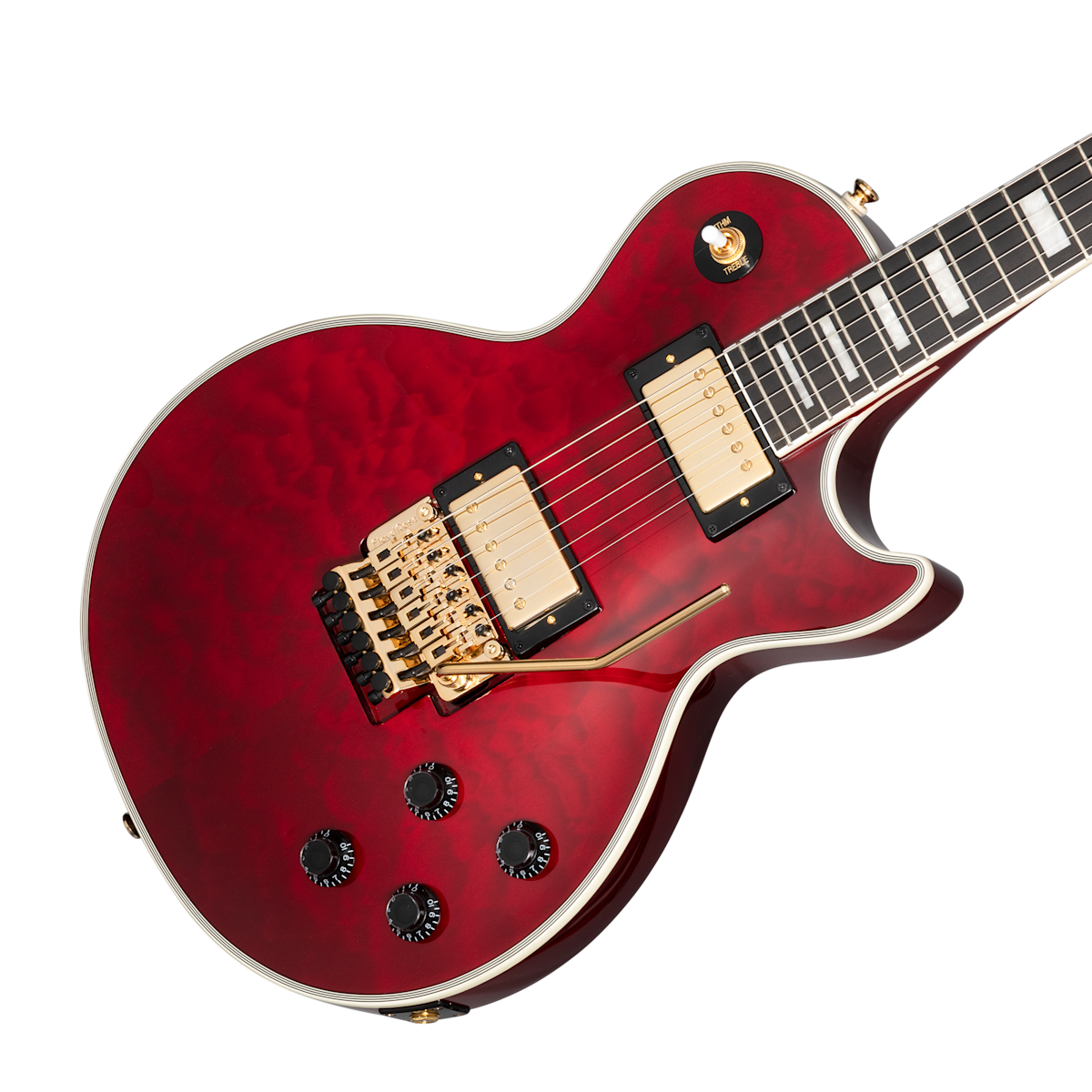 Epiphone の Alex Lifeson Les Paul™ Custom Axcess は、Alex Lifeson とGibson™との広範な共同作業を経て開発されました。お求めやすい価格を実現しつつ、あらゆるプレイヤーが思い思いのプレイを楽しめるよう、クラシックなレスポールをベースに新たにデザインされました。このギターにはレスポールの伝説を築いた伝統的なトーンがすべて備わっており、かつてないほどのサウンドと優れた演奏性がギタリストにもたらされます。フロントポジションにパワフルな Epiphone Ceramic Pro™ピックアップ、ブリッジポジションにPro Bucker™ 3 ピックアップ、ボリュームノブのプッシュ/プルによるコイルタップ機能、そして定評あるFloyd Rose® 1000 シリーズ・トレモロが搭載されています。