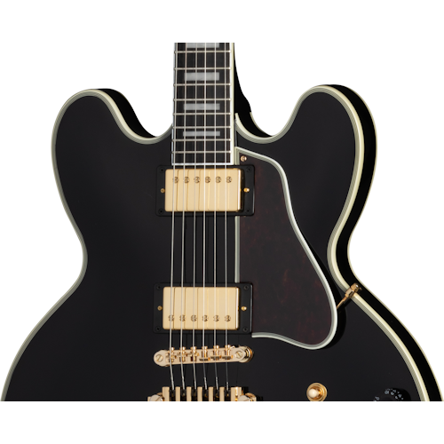 ブルース界の帝王であるB.B.キングの名を冠した数々のモデルをベースとして、Epiphone B.B. King Lucilleは、彼が長年にわたって演奏してきた様々なGibson ES™モデル(そのどれもが“ルシール”と名付けられていた)からインスピレーションを得て製作されています。ゴールド・ハードウェア、Grover® Rotomatic® チューナー、Graph Tech® ナット、パーロイド・ブロック・インレイを施したエボニー指板、B.B.キングの名前を刻印した真鍮製トラスロッド・カバー、ヘッドストック・フェイスのマザーオブパール・ルシール・インレイ、ボディとヘッドストックの多層バインディング、ファイン・チューナー付き TP-6 テールピース、フィードバックを軽減するためのメイプル・センターブロックを備えたセミホロウ・ボディなど、充実した仕様の数々が盛り込まれています。一般的なセミホロウ・ボディのギターとは異なり、B.B.King LucilleのトップにはFホールがありません。歴代の“ルシール・モデル”においてフィードバック軽減のため本人がリクエストしてきた仕様と同様です。6ポジションのVaritoneスイッチ、CTS®ポテンショメーターに接続された2基のAlnico Classic PRO™ハムバッキング・ピックアップ、ステレオ/モノラル出力端子など、エレクトロニクスの面においても抜かりない仕上がりです。EpiLite™ケースが付属します。