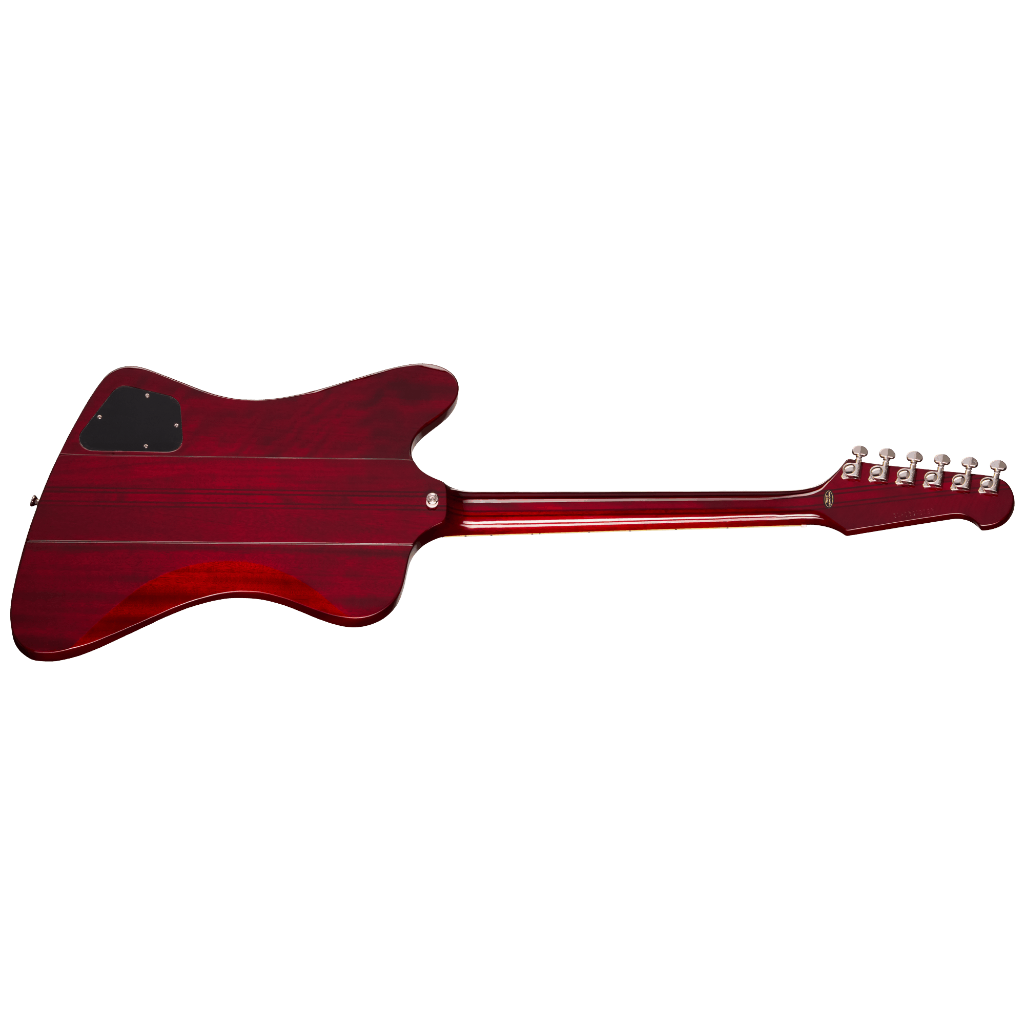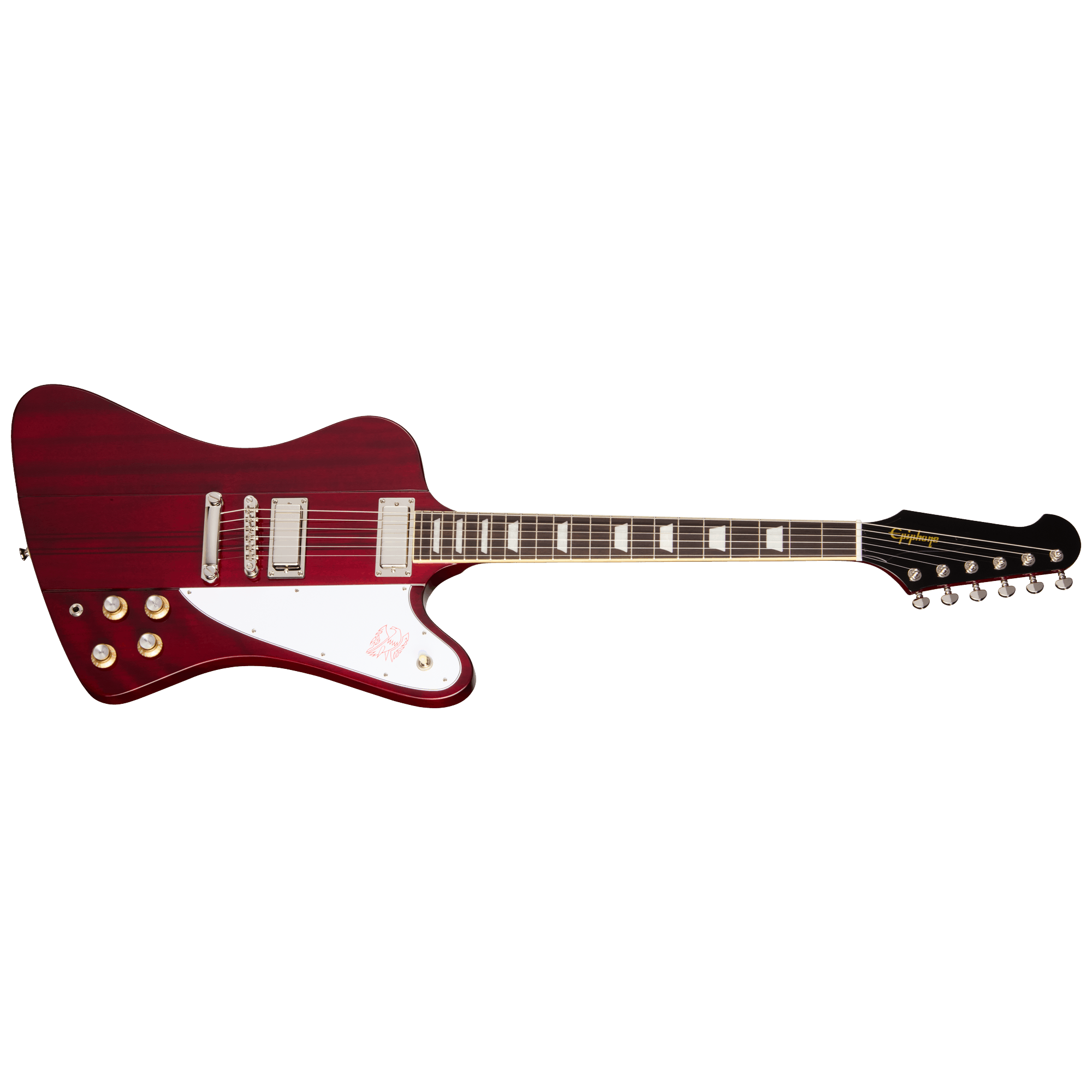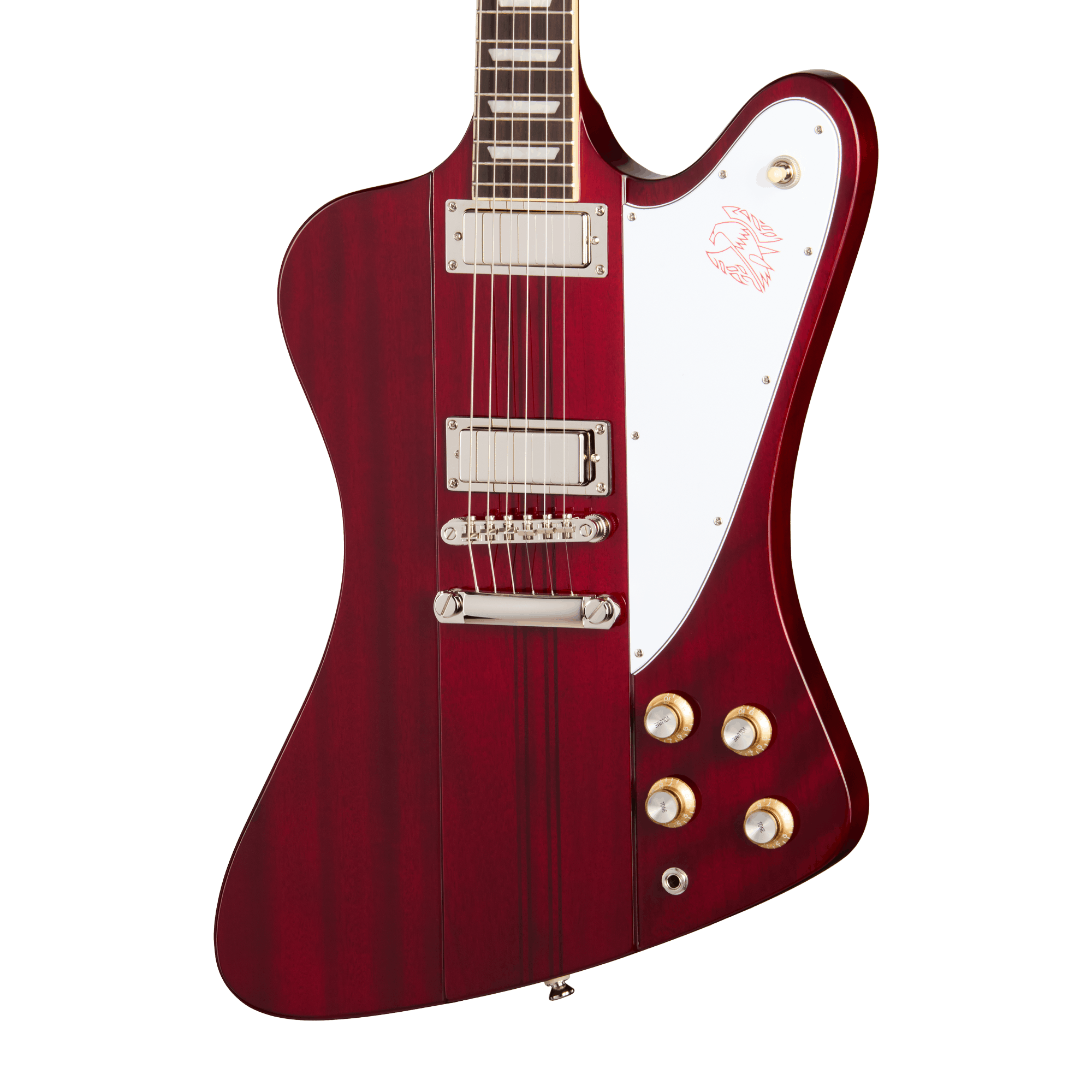 Epiphone Inspired by GibsonによるFirebird™は、1963年の登場時に採用されたリバース・ボディおよびリバース・ヘッドストック・デザインを忠実に再現したモデルです。Firebirdは、著名な自動車デザイナーであるレイ・ディートリッヒによってデザインされ、Gibson初のネック・スルー・ボディ構造を採用したモデルとして知られています。 Firebirdは、マホガニーとウォルナットによる伝統的な9プライ構造のネック・スルー・ボディを採用しており、豊かで温かみのあるトーンと、卓越したサステインを実現します。ネック・スルー・ボディ構造により、チューナー、ピックアップ、ブリッジ、テイルピースはすべて同一の木材上にマウントされ、高い共鳴特性を生み出しています。 スリムテーパーCプロファイルを採用したネックには、バインディング付きローズウッド指板を組み合わせ、22本のミディアム・ジャンボ・フレットとパーロイド・トラペゾイド・ポジション・マーカー・インレイを装備しています。視覚的な存在感とともに、スムーズで快適な演奏性を提供します。