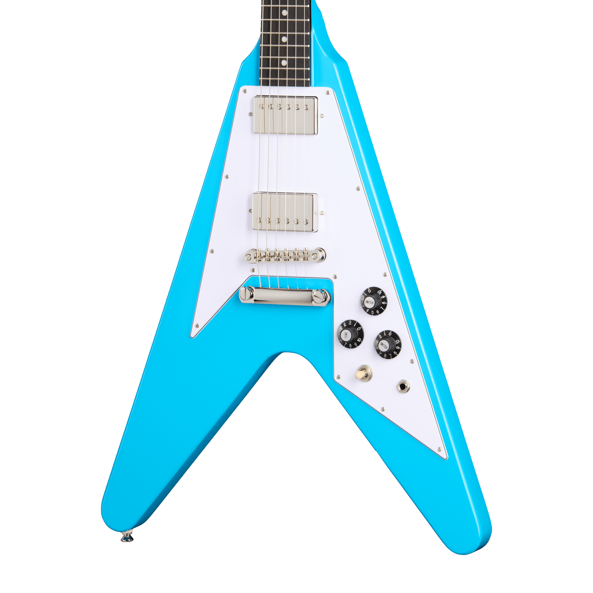 現在では、Gibson Flying V™は史上最も有名で、ひと目でそれと分かるギター・デザインのひとつとして知られています。しかし、その評価と人気は決して最初から確立されていたわけではありません。1958年の登場当初は、大きな注目を集めるには至りませんでしたが、年月とともにその魅力がギタリストたちに理解されていきました。1960年代後半には著名なプレイヤーたちが使用し始め、さらに1970年代に入ると、ハードロック・ギタリストたちが未来的なシェイプとパワフルなサウンドを支持したことで、Flying Vは真価を発揮する存在となりました。マイケル・シェンカー、ジミ・ヘンドリックス、K.K.ダウニング、マーク・ボラン、スティーヴ・ジョーンズなど、数多くのプレイヤーがFlying Vを手にし、その名声を不動のものとしました。