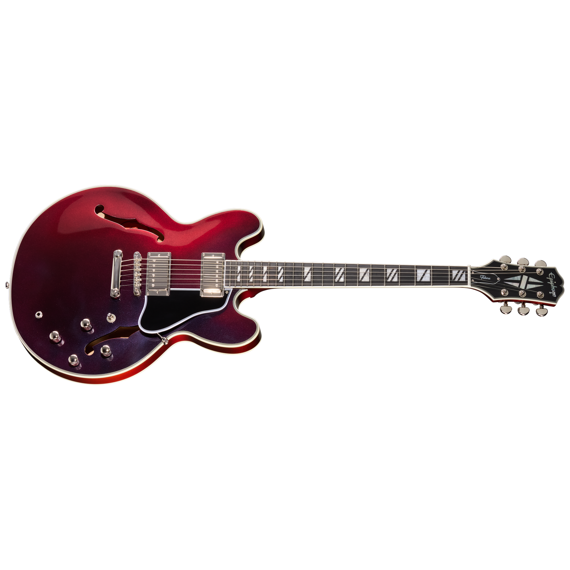 ギブソン ES-355™は数十年にわたりプレイヤーに愛されてきました。エピフォンは、1958年に初めて登場した伝説的なセミアコースティック・デザインを現代的に解釈したFutura ES-355を発表します。このモデルは、ウェイトリリーフ加工が施されたソリッド・メイプル・センターブロックを採用しており、軽量で快適な取り回しを維持しながら、サステインの向上とフィードバックの抑制を実現しています。LockTone™ Tune-O-Matic™ブリッジとLockToneストップバー・テイルピースが安定したイントネーションとサステインを約束し、Posi-Lok™ストラップボタンは追加のハードウェアなしでストラップを安全に固定します。