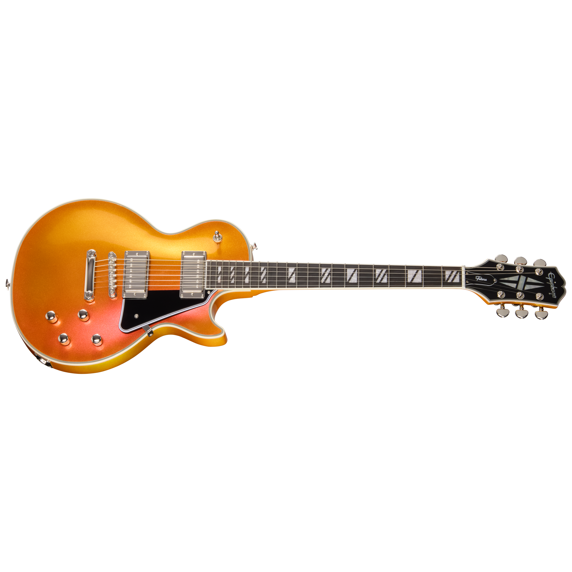 エピフォンの新しいFuturaシリーズは、プロフェッショナルなパフォーマンスと未来的な機能を求める現代のギタリストのために設計されています。これらの「Inspired by Gibson」モデルは、現代におけるライブ、レコーディング、コンテンツ制作に最適なトーンとスタイルを提供します。大胆なカラーシフト・フィニッシュ、完全新設計のピックアップ、そしてコイルタップやフェイズ・スイッチといった汎用性の高い電子回路を備え、現代のプレイヤーが音と視覚の両面で個性を放ち、表現をするために必要なルックスとサウンドを兼ね備えています。さらに、ステンレス・スチール・フレット、コンパウンド・ラジアス指板、快適なネック・プロファイルなどのハイパフォーマンスな仕様により、Futuraシリーズは革新的であり、あらゆるギター・コレクションに加えるべき一本となっています。