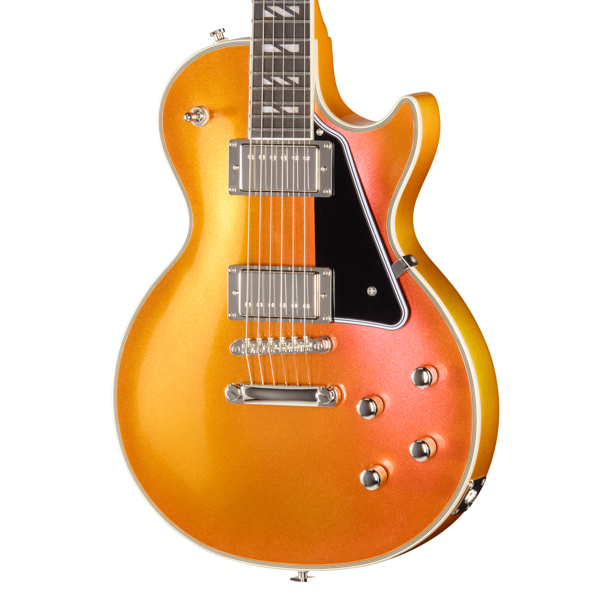 Futura Les Paul Customのエレクトロニクスには、エピフォンの新しいProBucker™ Igniteハムバッカー™を搭載し、明瞭さを保ちながら高出力なパンチのあるサウンドを放ちます。プッシュ/プル・コントロールにより、コイルタップとフェイズの切り替えが可能で、トーンの柔軟性をさらに広げます。ステージや画面上で目を引く3種類の見事なクロマシフト・フィニッシュ(ファイアストーム・シフト、トワイライト・シフト、ミッドナイト・エンバー・シフト)をラインナップ。レコーディング、パフォーマンス、コンテンツ制作のいずれにおいても、機能性に満ちたFutura Les Paul Customはプレイヤーにインスピレーションを与えます。プレミアム・ギグバッグが付属します。