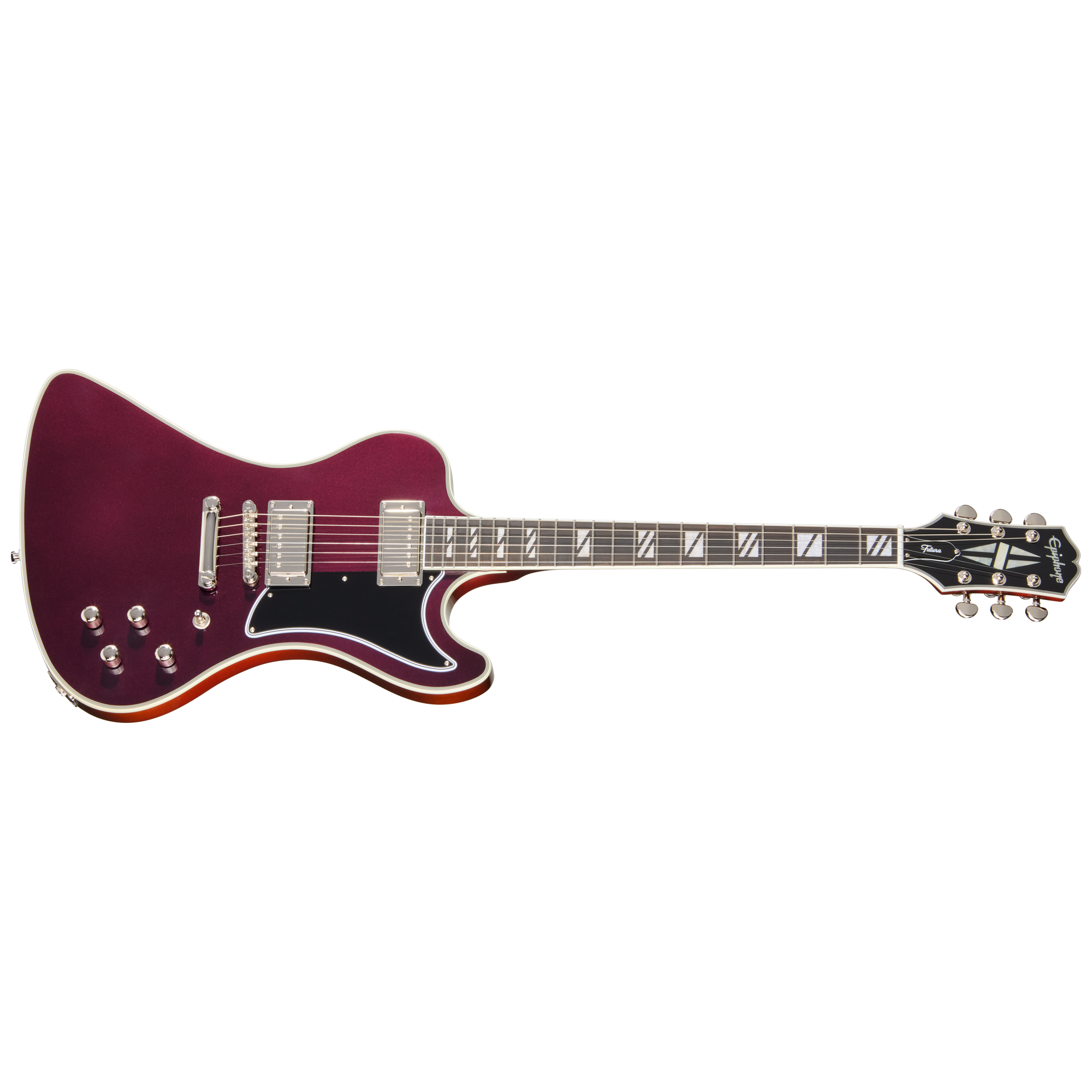 エピフォンの新しいFuturaシリーズは、プロフェッショナルなパフォーマンスと未来的な機能を求める現代のギタリストのために設計されています。これらの「Inspired by Gibson」モデルは、現代におけるライブ、レコーディング、コンテンツ制作に最適なトーンとスタイルを提供します。大胆なカラーシフト・フィニッシュ、完全新設計のピックアップ、そしてコイルタップやフェイズ・スイッチといった汎用性の高い電子回路を備え、現代のプレイヤーが音と視覚の両面で個性を放ち、表現をするために必要なルックスとサウンドを兼ね備えています。さらに、ステンレス・スチール・フレット、コンパウンド・ラジアス指板、快適なネック・プロファイルなどのハイパフォーマンスな仕様により、Futuraシリーズは革新的であり、あらゆるギター・コレクションに加えるべき一本となっています。