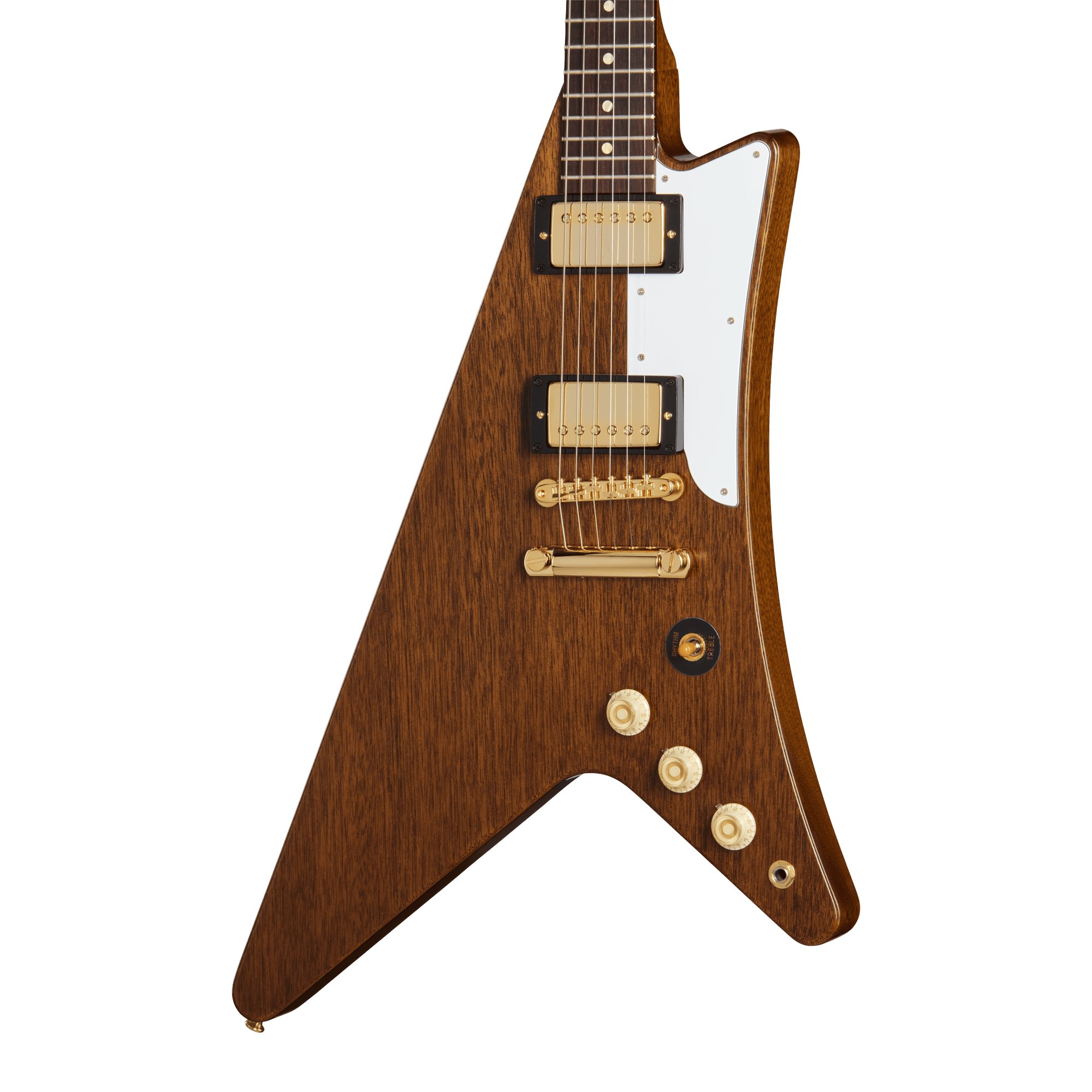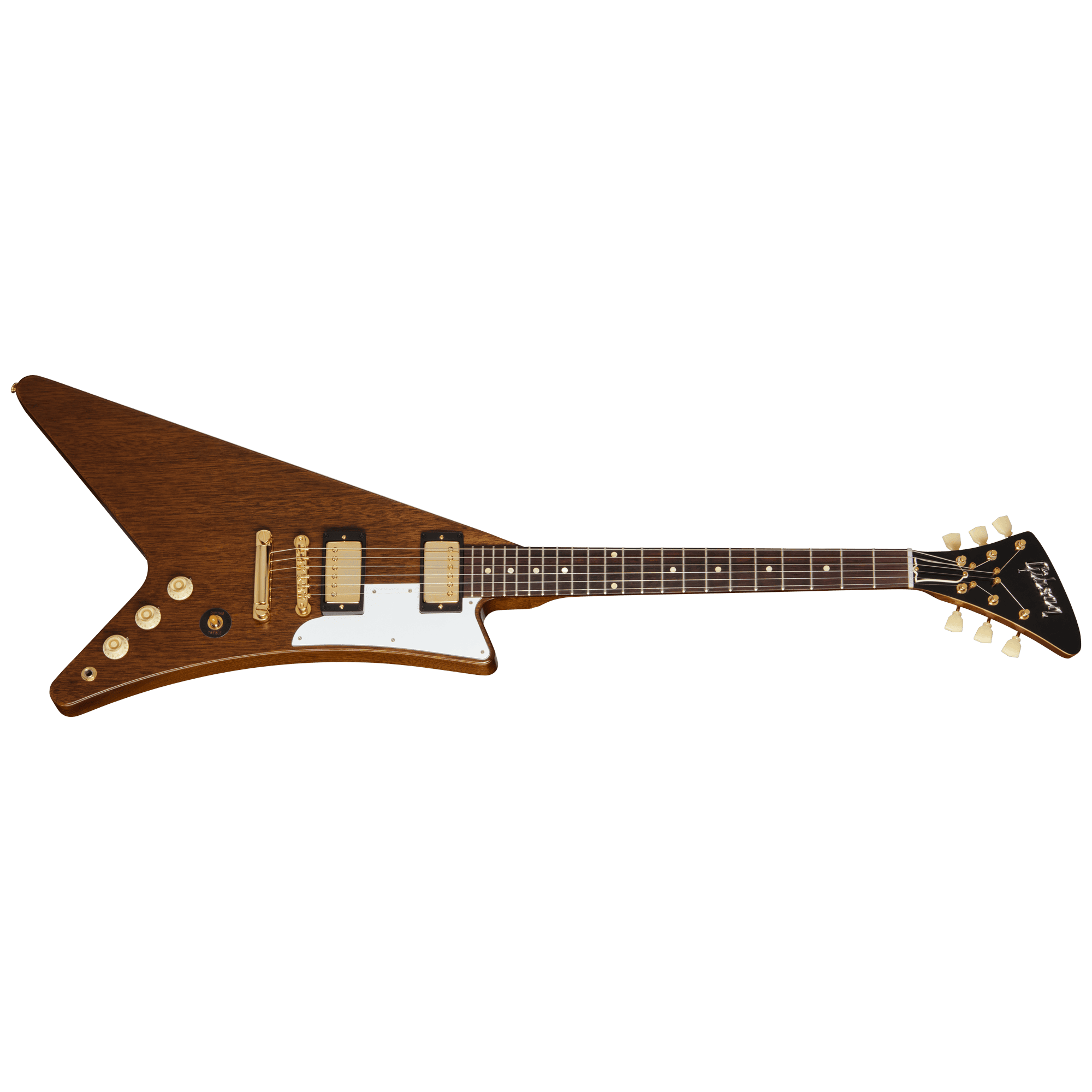 1957 Mahogany Moderne Reissueは、マホガニーボディ、50sヴィンテージ・プロファイルのマホガニーネック、ギブソン・レイズドロゴを備えたオリジナルModerneヘッドストック・デザインを採用し、リイシュー仕様のKluson®シングルリングチューナーを装備しています。バインディングなしのインディアン・ローズウッド指板にはミディアム・ジャンボフレットとドット・インレイを装備し、アンティークナチュラルのニトロセルロースラッカーとゴールドハードウェアはVOS仕上げとなっており、1950年代後期に製作されたニューオールドストックの外観を再現しています。ハードシェルケースが付属します。