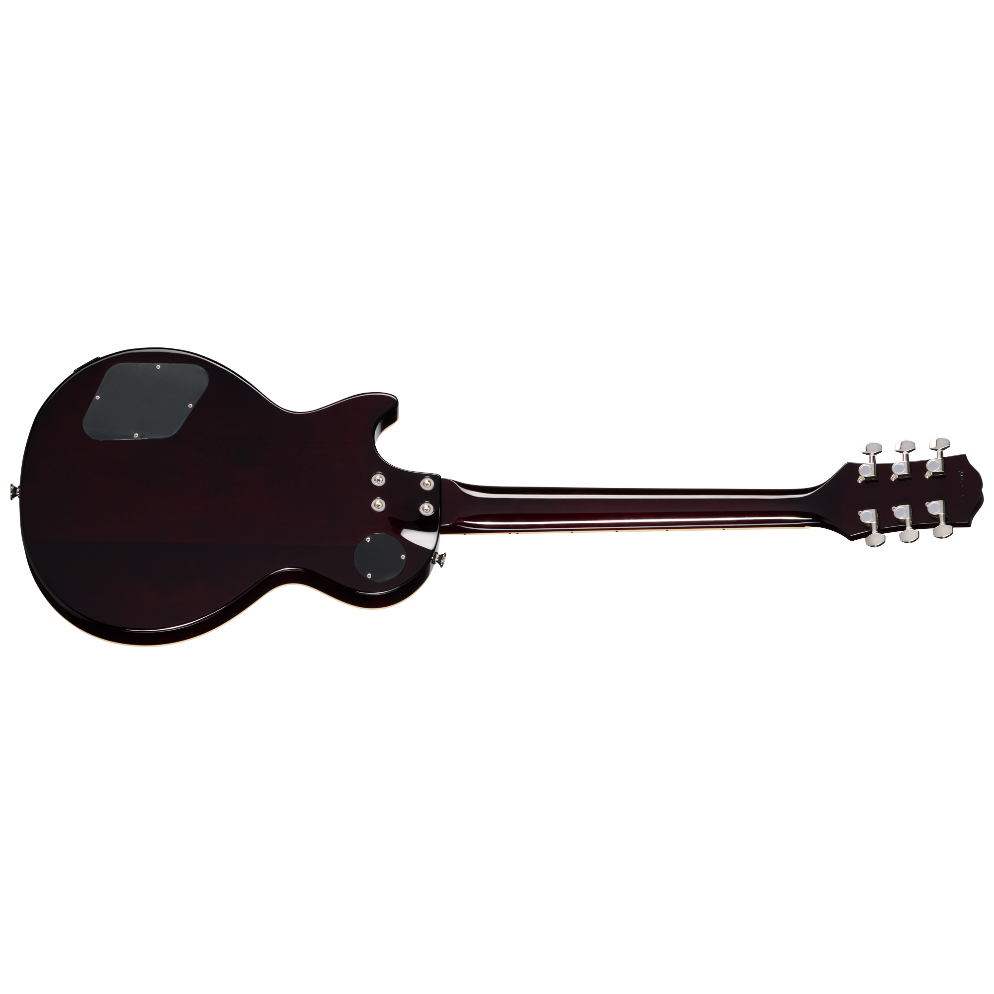 エピフォン レスポール・トリビュート・プラスは、クラシックなギブソン レスポールと同じボディ形状を採用。AAAフレイム・メイプルの化粧板をトップに配し、トップ全体はカーヴド&バインディング加工で仕上げられ、圧巻の美しさを誇ります。ボルトオン仕様でボディに接合されたネックは、60年代スタイルのSlimTaper Rounded Cプロファイルを採用。演奏性に優れ、練習やジャムセッションを快適にサポートします。ネックヒールはスカルプテッド加工が施されており、ハイポジションへのアクセスが向上しています。ヘッドストックは人気の60sカラマズーシェイプを採用し、高品質なダイキャスト製チューニングマシンを装備。バインディング付きのローレル指板には22本のミディアムジャンボ・フレットが打たれ、パーロイド製のトラペゾイド・インレイが施されています。ブリッジにはEpiphone LockTone™ Tune-O-Maticを、テイルピースにはLockTone Stop Barを採用。弦高とイントネーションの微調整が容易で、なおかつ優れたサステインを生み出します。ピックアップはEpiphone Humbucker™を2基搭載。ネックポジションにEpiphone 650R、ブリッジポジションにEpiphone 700Tを装備。両ピックアップは強力なセラミックマグネットを備え、豊かで力強いトーンを出力します。ニッケルカバーの下はゼブラ・コイル仕様となっています。