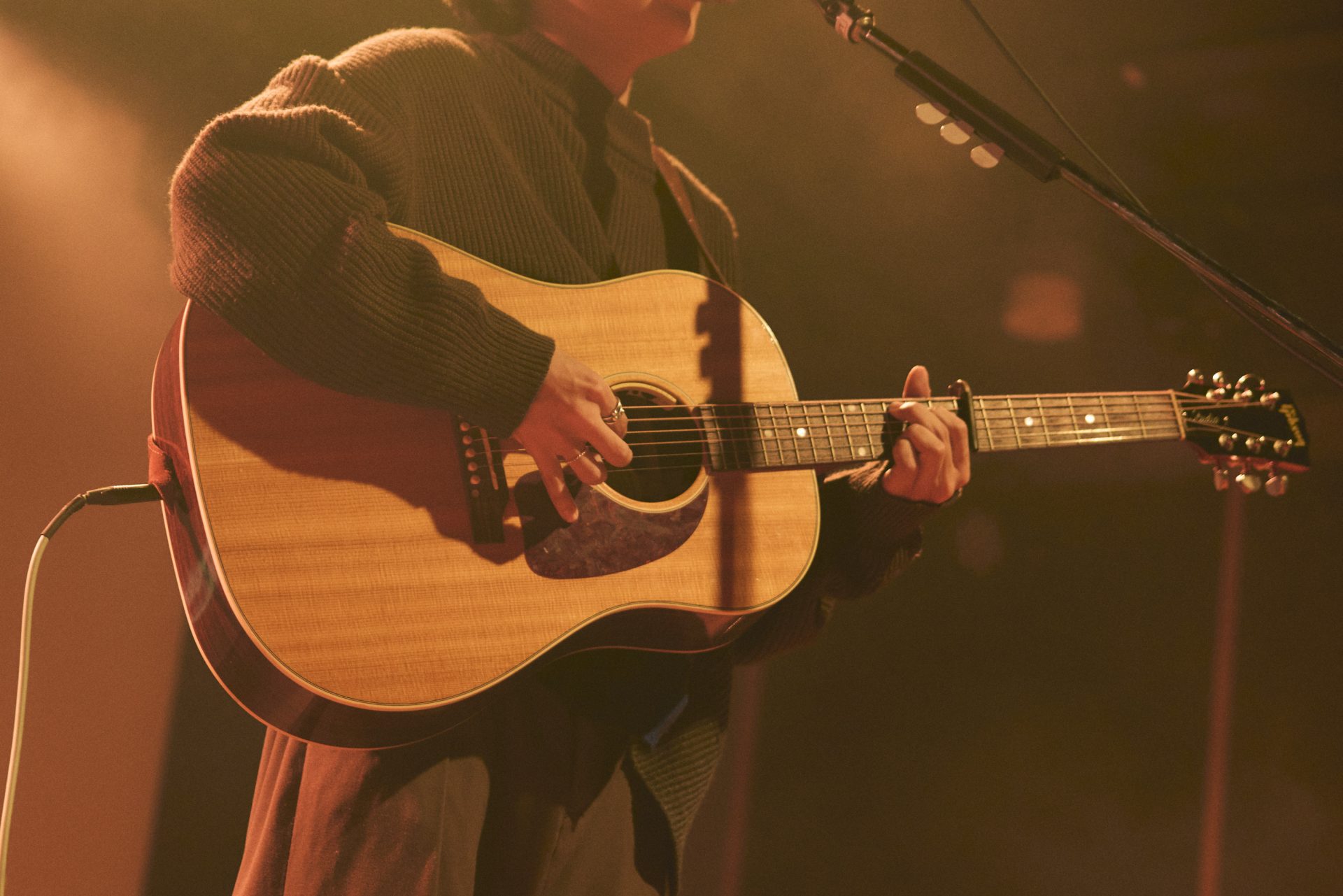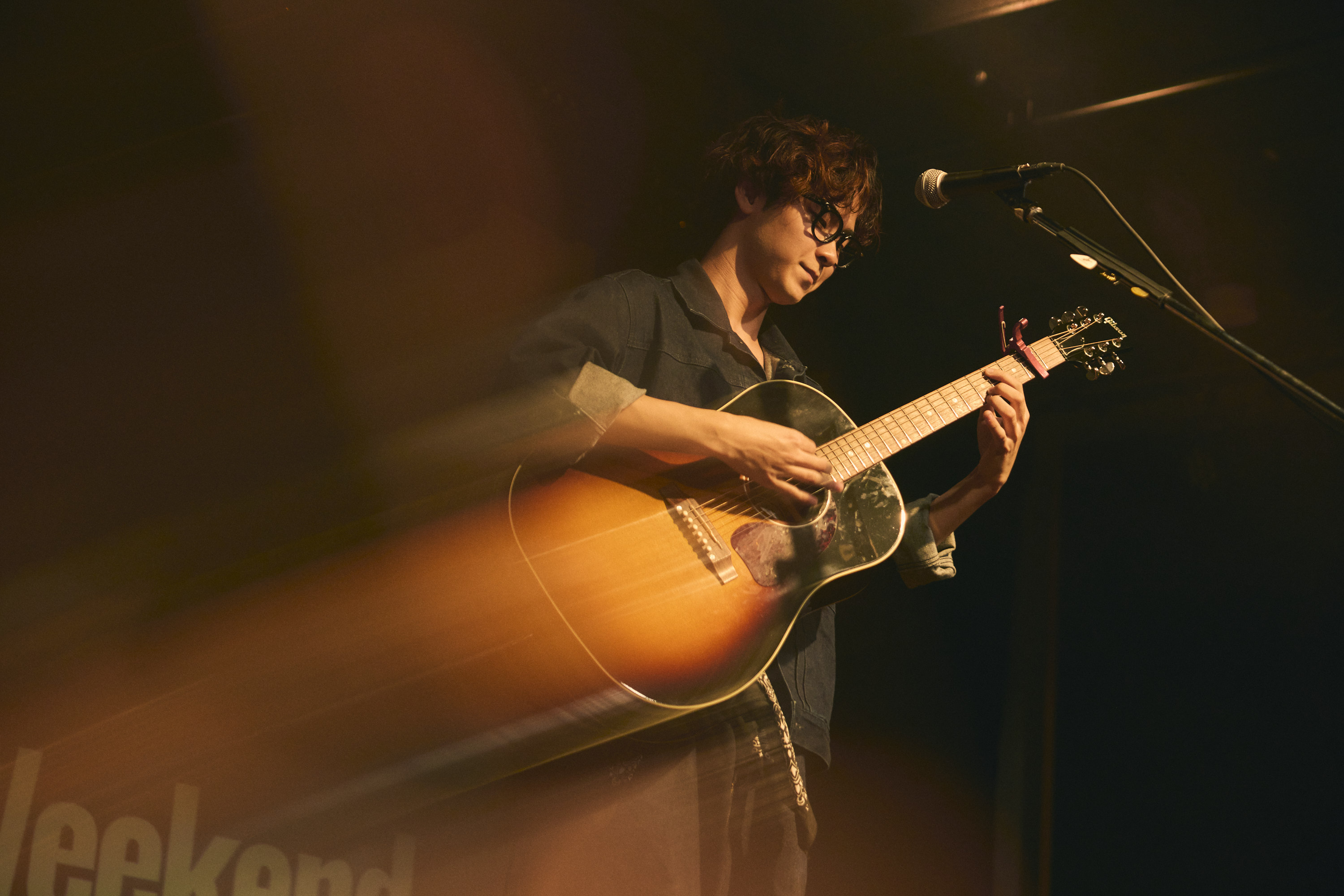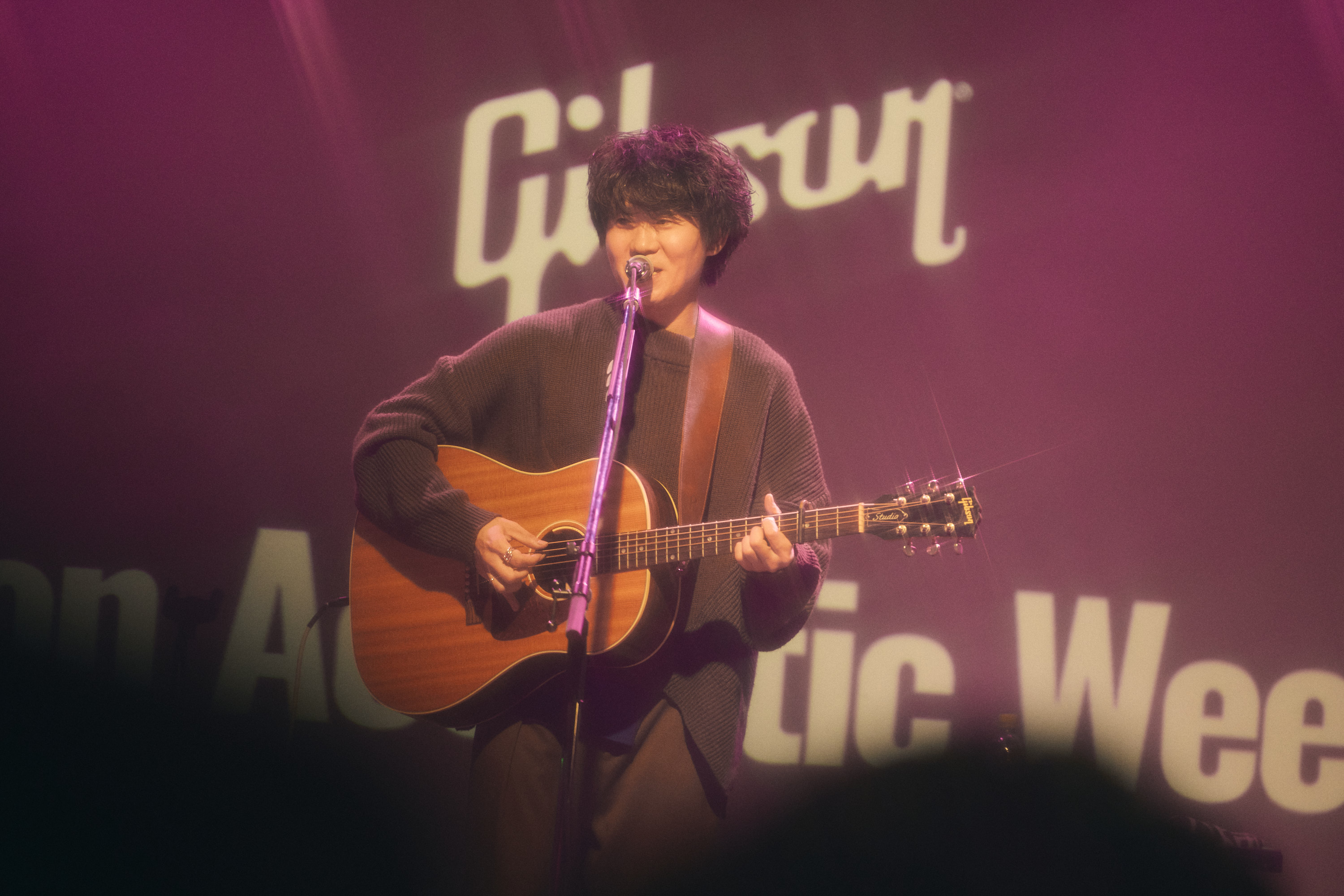 その後も彼は楽曲の雰囲気に合わせて2本のギターを使い分け、独自の世界観を奏でていく。ラストの「ラブソング」では軽やかでありつつもアタックもあり、心に熱を込めたプレイをJ-45とともに作っていった。
