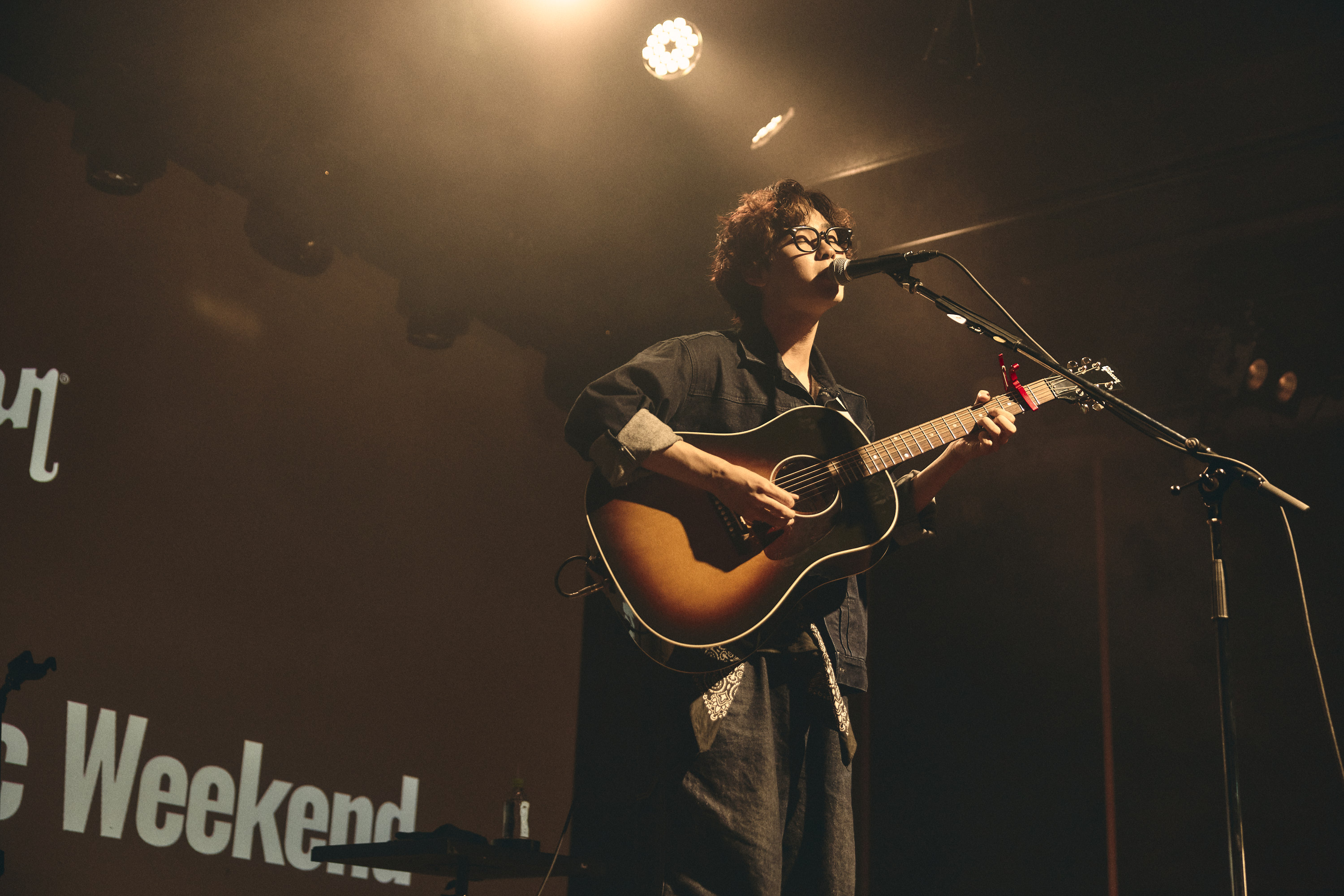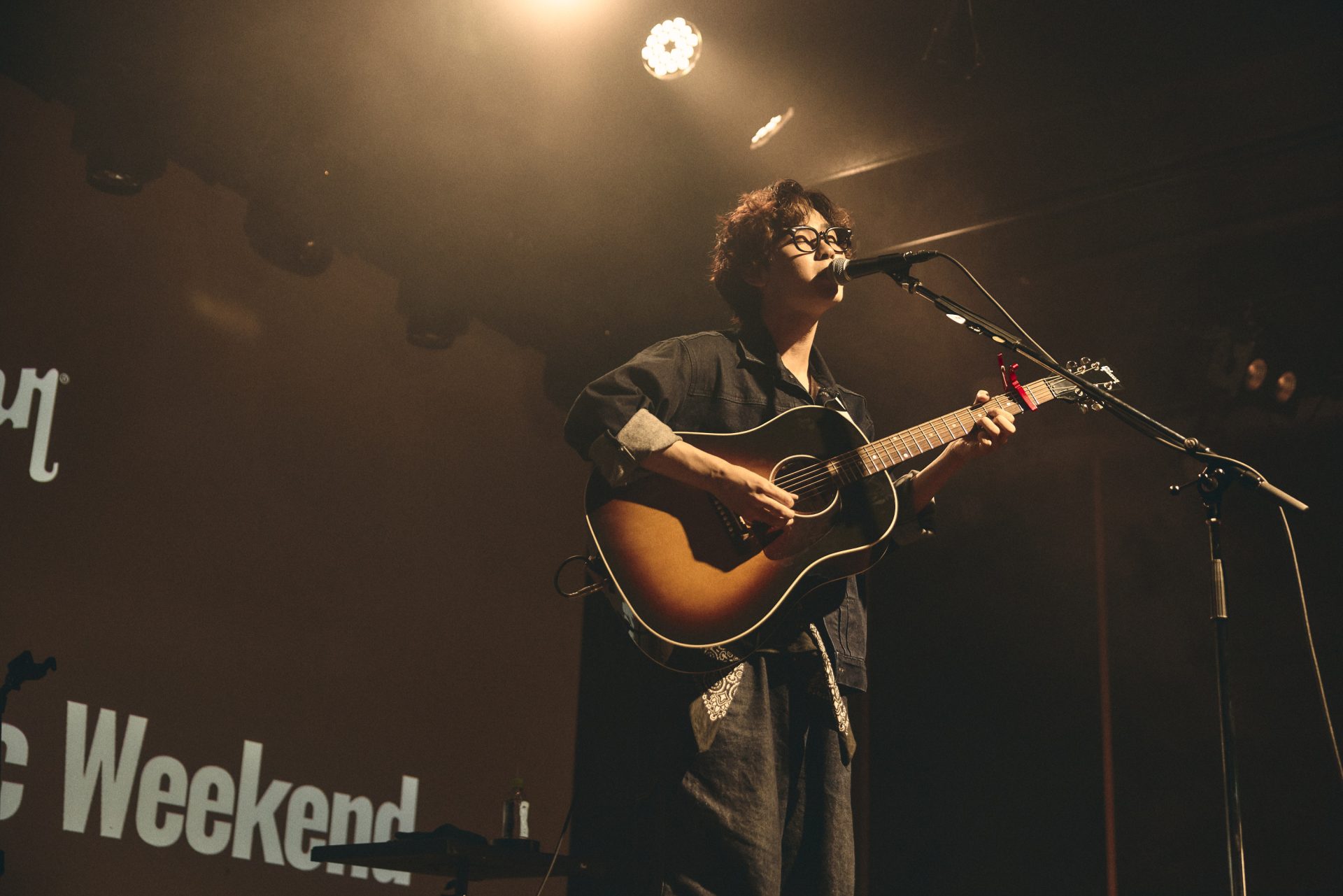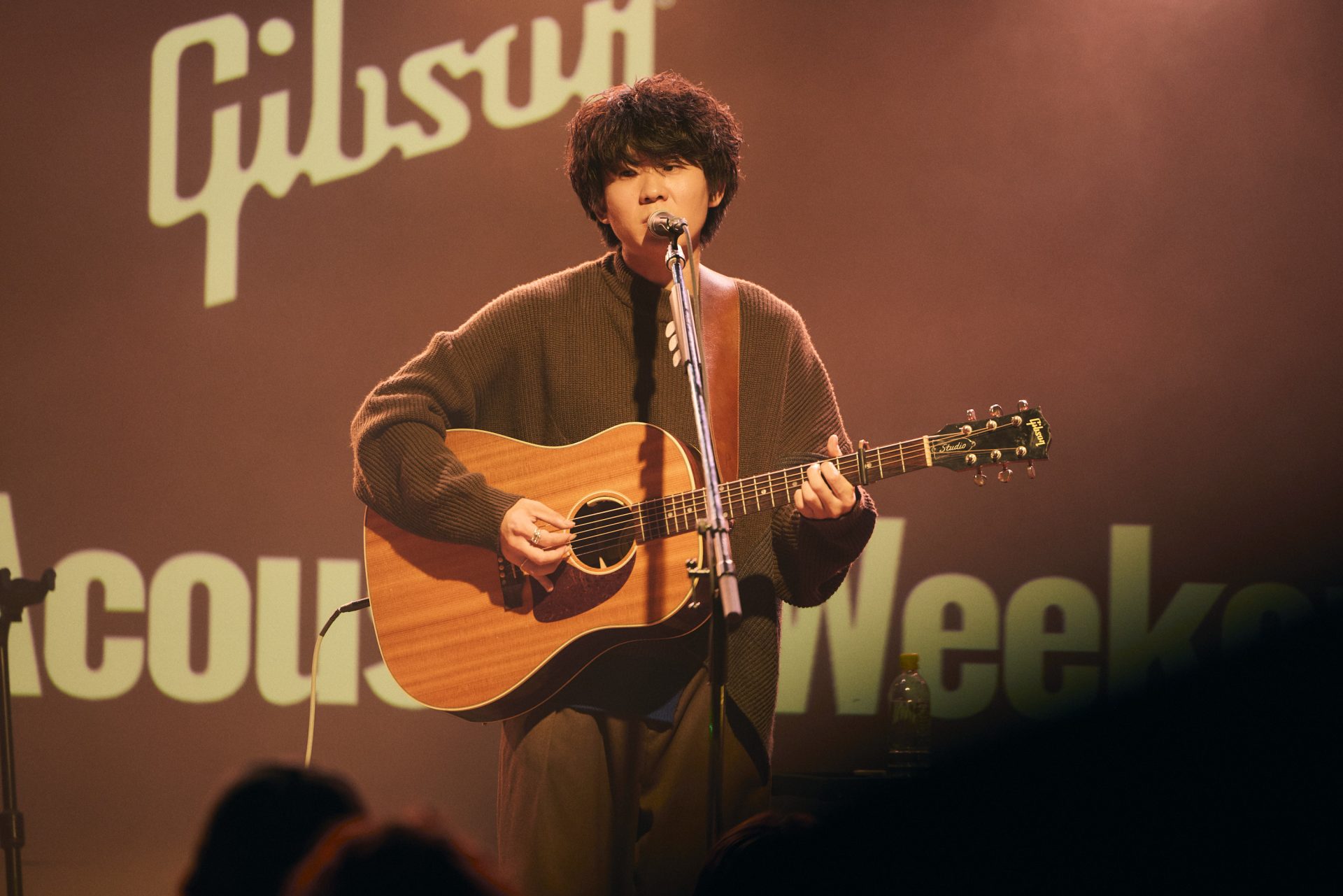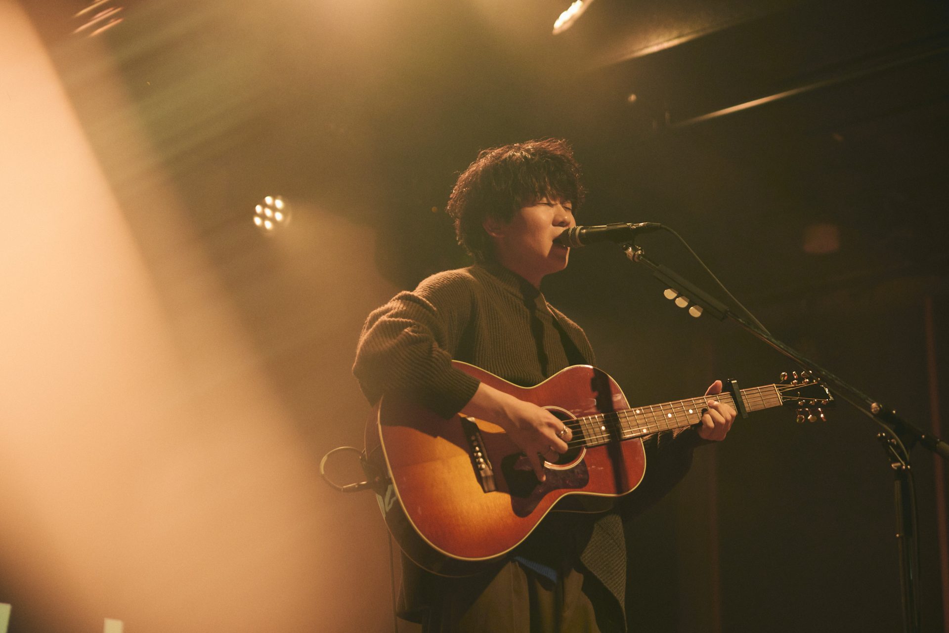 その後も彼は楽曲の雰囲気に合わせて2本のギターを使い分け、独自の世界観を奏でていく。ラストの「ラブソング」では軽やかでありつつもアタックもあり、心に熱を込めたプレイをJ-45とともに作っていった。