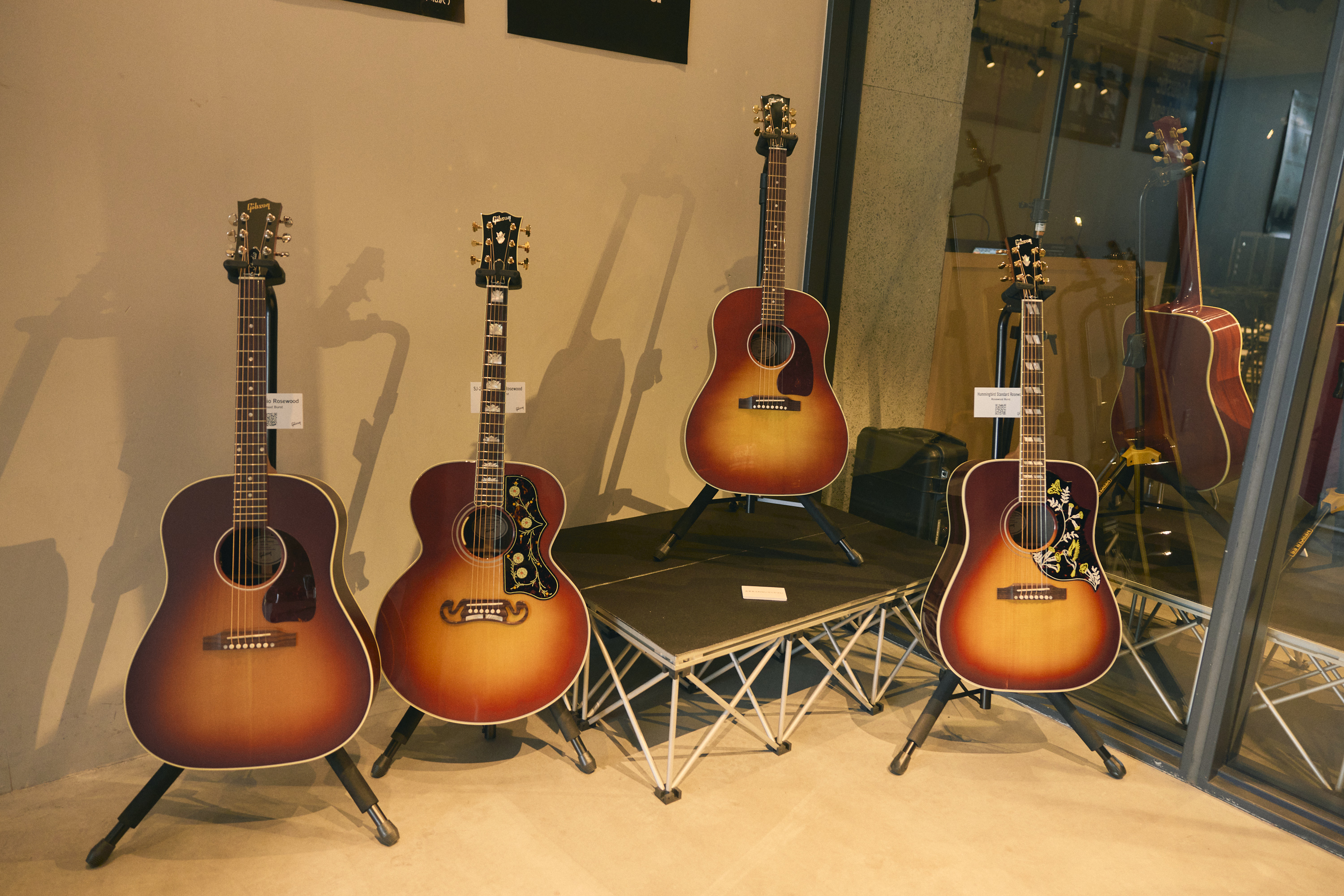 休憩を挟んでライブ本篇となるが、来場者はその間もアコースティック・ギターの世界に触れることができるため、時間を持て余すことはない。エントランスにはたくさんのギブソン製アコースティック・モデルが展示されているのだ。