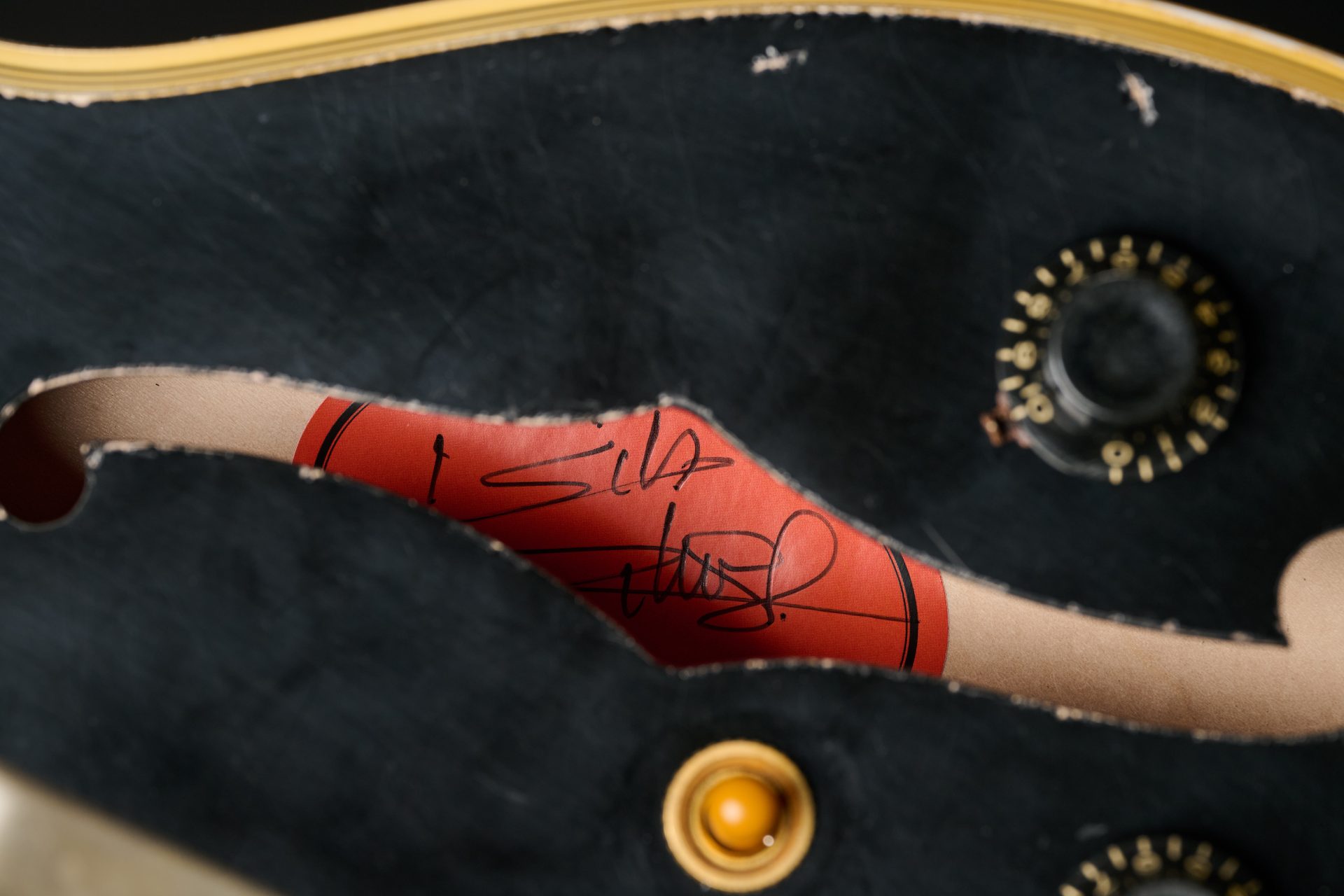 ハードウェアにはBigsby B7ヴィブラートと、ミルクボトルGrover Rotomaticペグを搭載しています。金属パーツ、プラスチック部品、フィニッシュは、すべてマーフィー・ラボの職人によってエイジド加工が施されています。ピックアップはアルニコ5マグネットを採用したノンポッテッドのCustombuckerを2基搭載し、CTS 500kオーディオ・テーパー・ポットおよびペーパー・イン・オイル・キャパシターに配線されています。各ギターにはGibson Protectorシリーズ・ケース、認定証、ストラップが付属します。 本モデルは世界限定100本のみ製作され、すべての個体にキース・リチャーズ本人のサインがfホール・ラベルに記されています。