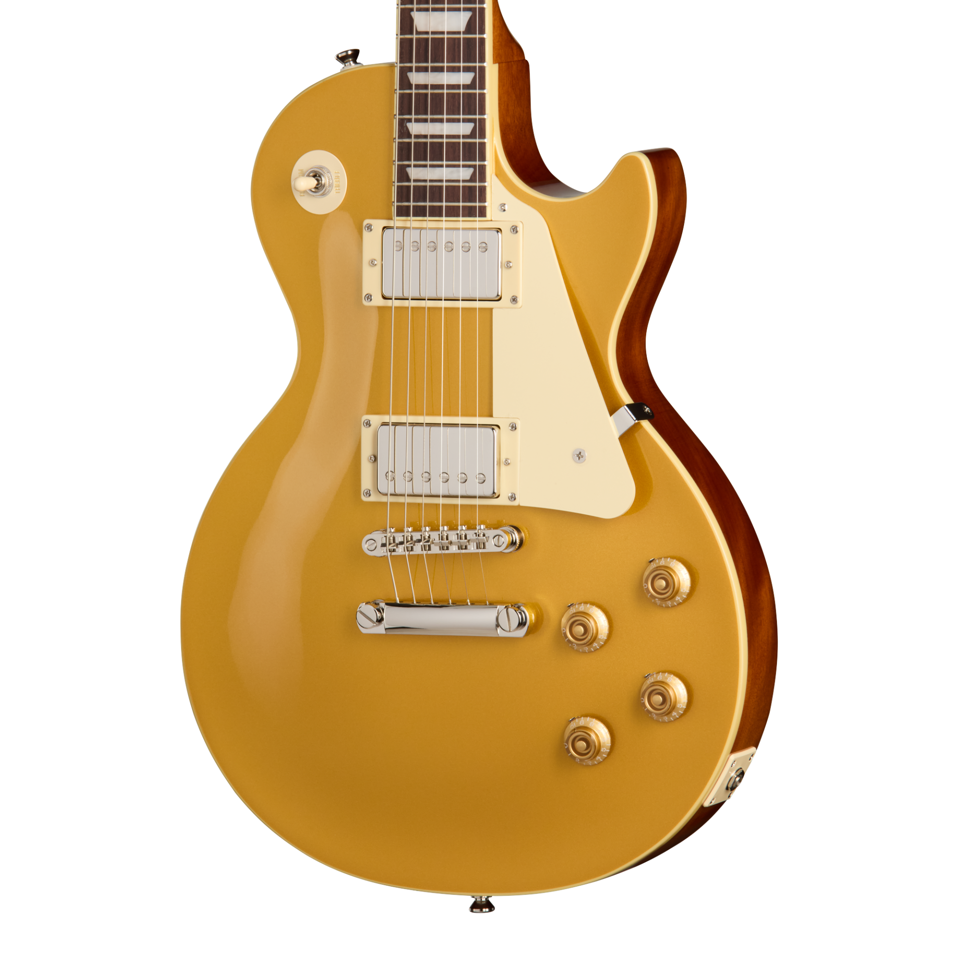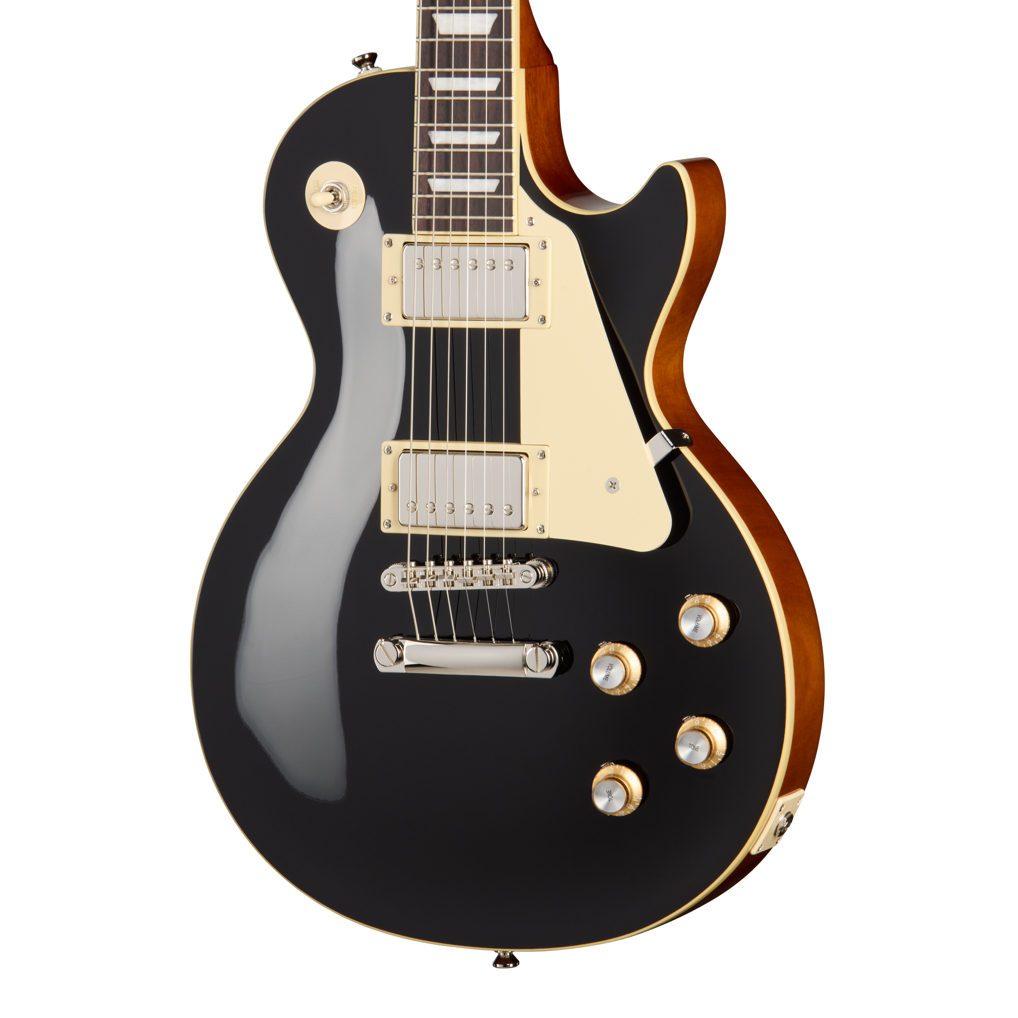 ピックアップには、高い評価を受けているエピフォンProBuckerハムバッカーを2基搭載し、ネック・ポジションにProBucker 1、ブリッジ・ポジションにやや出力の高いProBucker 2を配置しています。3ポジションすべてでバランスの取れたトーンを提供します。CTSポットによる50sスタイル配線を採用し、ゴールドのトップハット・ノブ(ダイヤル・ポインター付き)を装備しています。