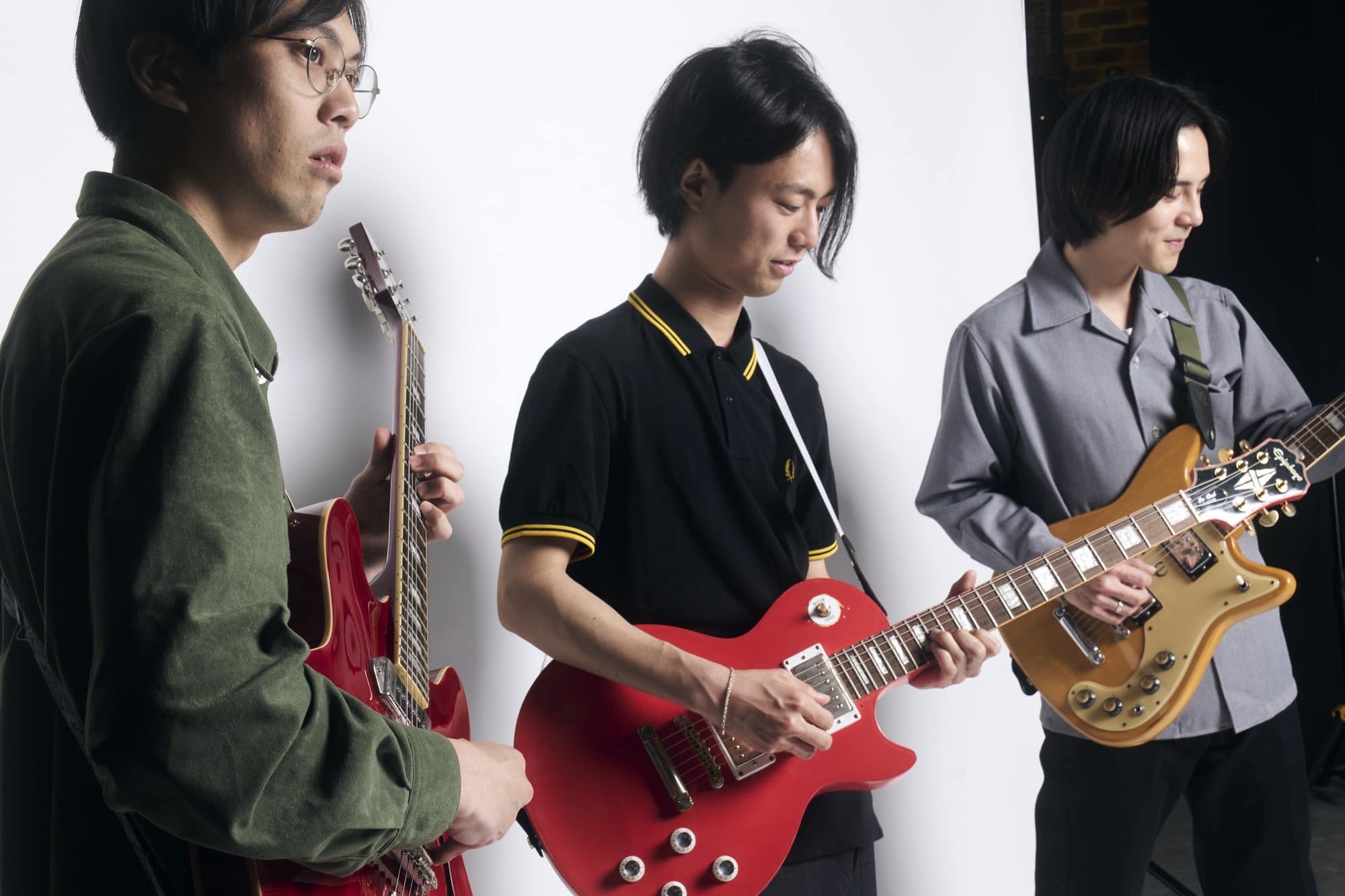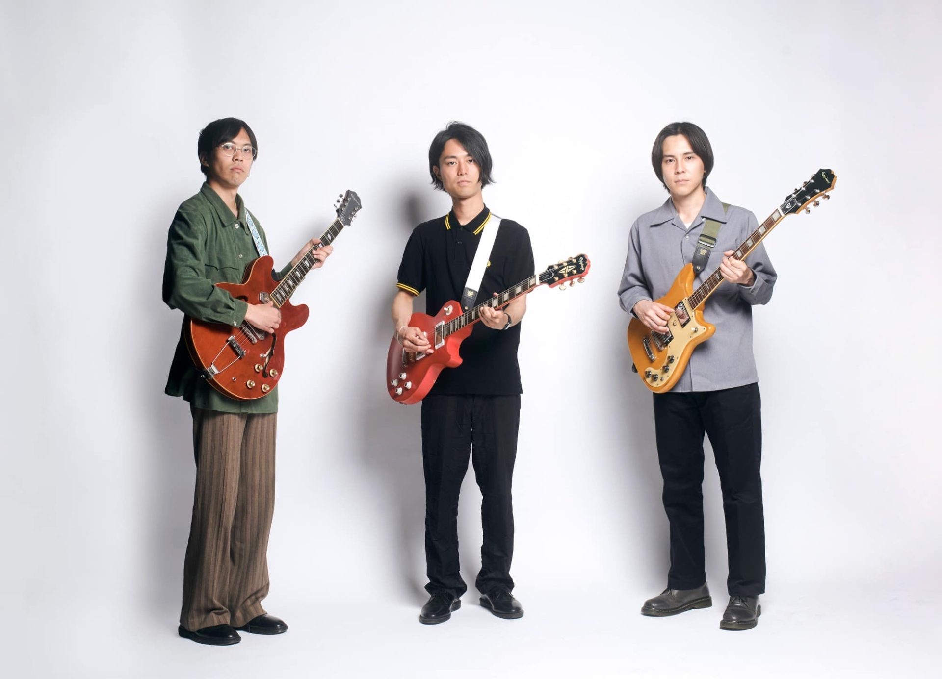 創業者ファミリーの故郷・ギリシャで、「共鳴」を意味する言葉にも通じるEpiphone(エピフォン)。創立150周年を迎える2023年、この時代に鳴り響くエピフォンの「サウンド」を伝えるため、数々のエピフォン・プレイヤーが登場する「THE SPECIAL COVERS」を展開します。「共鳴・反響」「重なるサウンド」「夢を受け継ぐ」というブランドテーマに沿ったスペシャルインタビュー。第6回目は、海外と日本をボーダレスに駆け巡る活動に大注目のオルタナティブ・ロック・バンド『DYGL(デイグロー)』から、ボーカル・ギターの秋山信樹さん、ギターの下中洋介さん、ギター・ドラムスの嘉本康平さんが登場。メンバー各自のエピフォンが1枚の写真に納まるのは、今回が初めてだそうです。