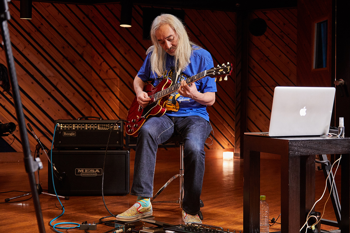 別の側面としては、収録の合間には「音、大丈夫ですか?」と我々を気遣い(大丈夫どころか、その超絶なプレイとサウンドに感動しかない)、インタビューにおいては事前に自ら用意したメモを確認しながら、間違いのないように慎重に答えていました。