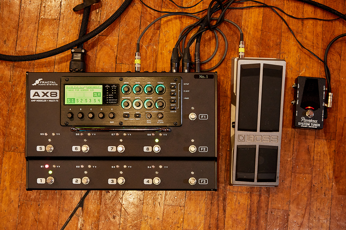 でも、演奏しながらコンパクト・エフェクターを同時に切り替えるのは大変じゃないですか。それを1発でポンと切り替わるように(20Uラックを使って)やってたんですけど、さすがに、やっぱり、その・・・限界がありまして。そんな時にフラクタルってこんなんだよって聞いて、じゃあちょっとやってみようって、そうしたらやりたいことが出来るようになったんです。