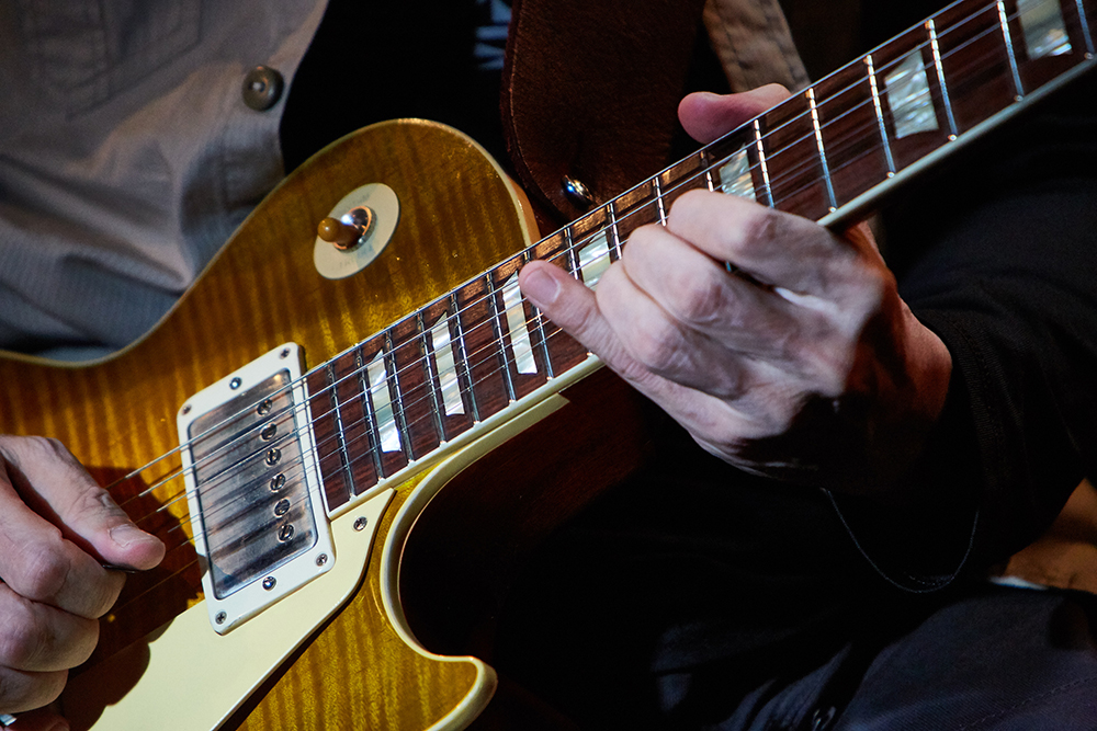 - レスポールを何本も、人のも含めて弾いてきたけれども、けっこう個体差があるなと思っていて、その中では(メインのレスポール・クラシック・プラスと今回弾いたレスポールが)ちょっと似たところがありますね。さっき言った1弦から6弦までのバランスがすごく揃っているので、そういう意味では弾きやすいですね。