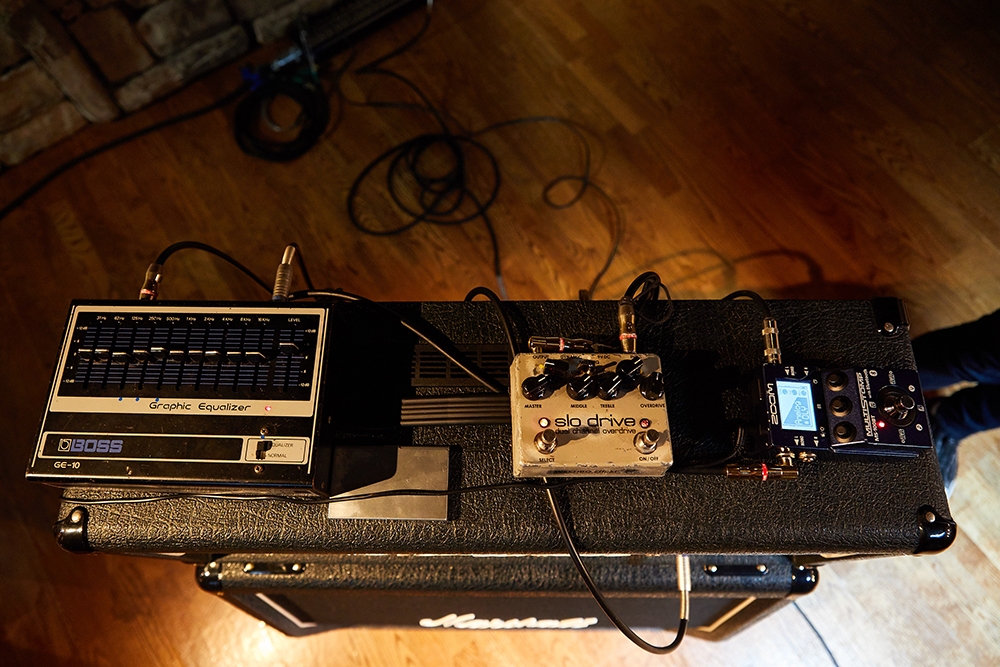 - 冷蔵庫ありましたよ。ローディがかわいそうな感じの「これ持たせるのか」みたいなの。まあ流行りですからね、あれもね。もう無くなっちゃいましたね。今またコンパクトを足元いっぱい置いてあるじゃないですか。あれやりたいなって今頃思うんだけど、若者は最近オール・イン・ワンの方に流れていってるって話を聞いて、ますます組もうかなって。やっぱり人と違うことをやりたいので。でも、組むのは“歪み”。この前40代ぐらいの同業者と話して、彼の機材を見て、大きなボードに10何個くらいエフェクターがあるんだけど、その内半分歪みで、「気に入った!」って思って、今グッときてます(笑)